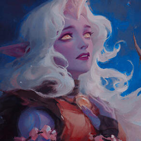 War had torn the Ionia apart, violence and strife seeping into the land itself as the small corner of where her parents once stayed felt the effects of the assaults from Noxus.Wishing to flee from the chaos, Morrigan’s family fled their homeland, travelling across the land for many years. Sailing across Piltover to the Shuriman continent, they sought to find solace in Targon, believing pilgrimage will bring them inner peace. Yet the climb was lethal and in the frozen heights, the pair nearly succumbed to the cold - Until they were rescued by an individual from the Ottrani Tribe who had been shepherding Stellacorns nearby.Taken to the Astral Grove, they were taken care of and their wounds were healed under the guidance of the Elder and a legend in the flesh - Soraka. Wishing to return the tribe’s kindness, they stayed among them until Morrigan was eventually born and raised in the Astral Grove. She had a combination of two cultures being taught to her, the ways of a faraway land known as Ionia where her parents hail - And the one she is with now, among the Ottrani.She became a shepherdess and one of the few wardens who guarded the grove, ensuring its safety and assisting those whom she may come across in the slopes of Targon. For a time, she even became Soraka’s apprentice, using the mastery of the stars and celestial magic to heal and defend her home.After some time, her parents passed away in peace and wishing to honour them, Morrigan decided to journey across Runeterra to reach Ionia and to pay her respects as well as see the world as they once had.